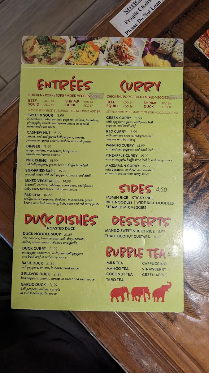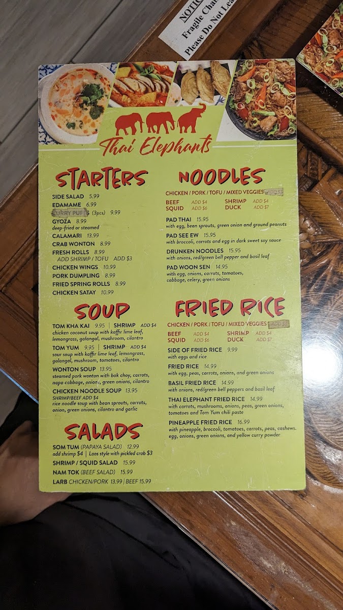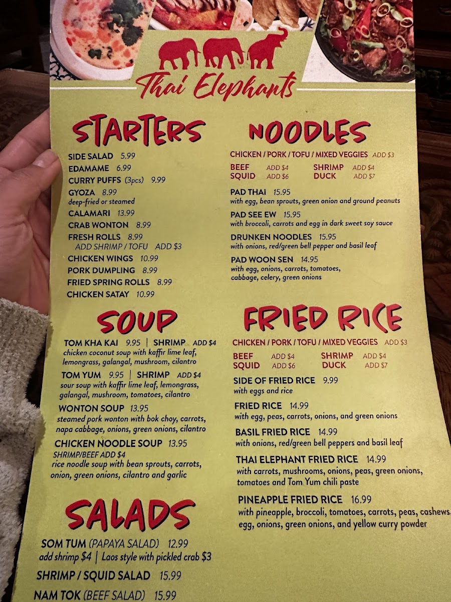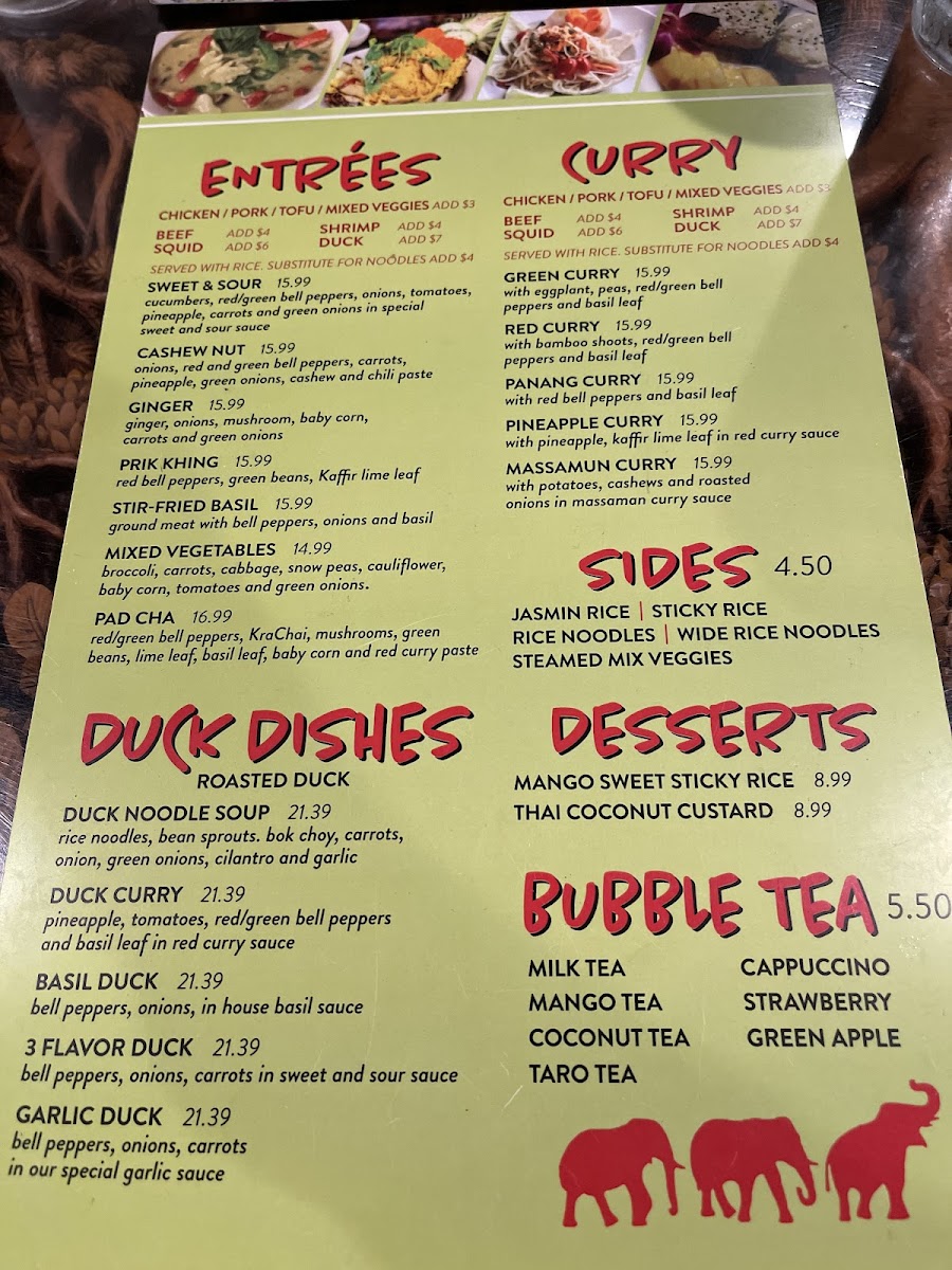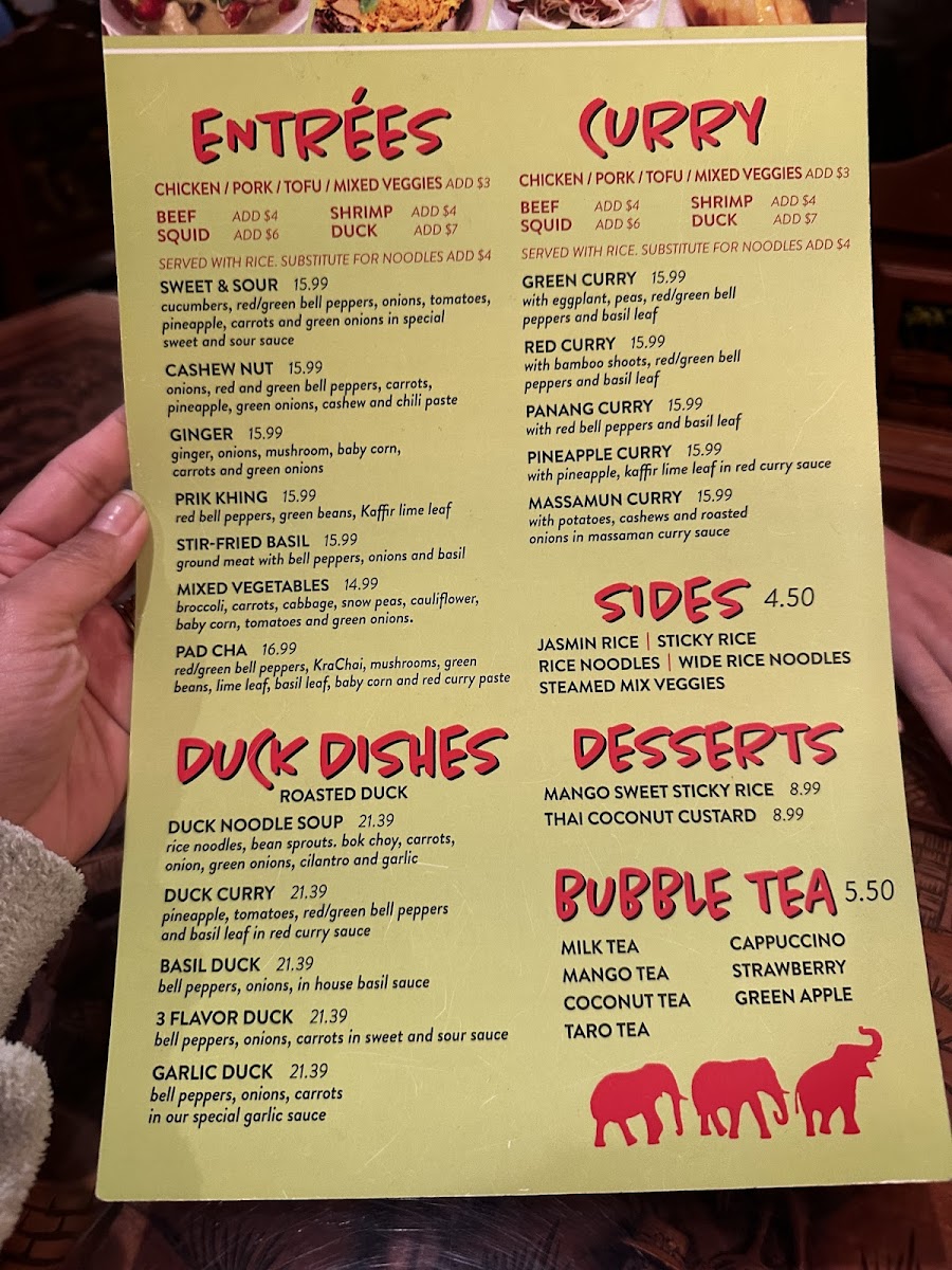 If you're craving a blend of bold flavors and comforting Thai dishes, the Thai Elephants Restaurant (James Island) Menu is just what you need. Located at 915 Folly Rd, Charleston, SC, this local gem serves up an incredible selection of authentic Thai cuisine that will leave your taste buds dancing. From rich curries and spicy stir-fries to fresh, vibrant salads, each dish is prepared with fresh ingredients and traditional spices that deliver the true essence of Thailand. Whether you're in the mood for a savory Pad Thai or a flavorful green curry, there's something on the menu for everyone. Pair your meal with a refreshing Thai iced tea, and you're in for a treat! The menu offers a variety of options, including vegetarian and gluten-free choices, so everyone can enjoy a delicious, satisfying meal. No matter what you choose, dining here promises an unforgettable Thai experience right in the heart of Charleston.